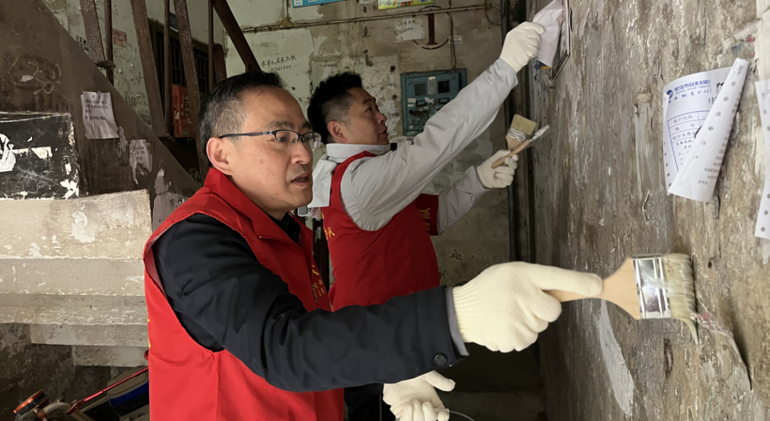 30余名下沉党员与小刘家湾社区、武昌区水务局、湖北瀛楚律师事务所、新就业群体美团站点外卖骑手代表、傅家坡小学师生代表等组成“百人志愿团”,着志愿者服装,拿起粉刷工具对居民楼栋内小广告进行集中清理整治、墙面刷白,拿着扫帚、垃圾钳等工具,将路段和小区的垃圾、绿化带内的纸屑、塑料袋等杂物清理干净。