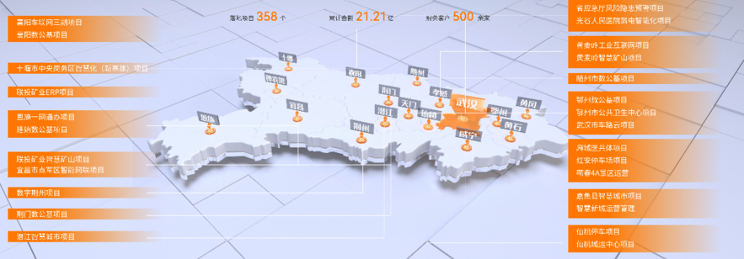 事业部坚持以标准为纲、技术筑基、模式赋能,依托覆盖全省的数字公共基础设施技术体系,深度融合数字孪生、AI 大模型等前沿技术,在城市治理、产城融合、工业互联、低空经济、智慧农业等核心赛道多点突破,成功落地近百个标杆项目,业务版图全面覆盖湖北 17 个市州。
