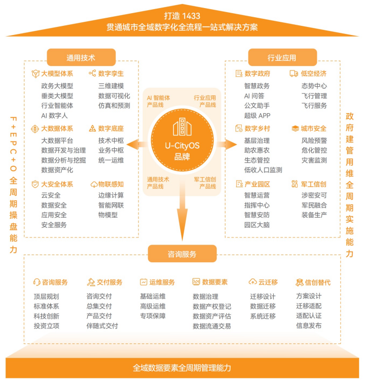 矩阵驱动,实现双轮协同发展。基于自研的“U-CityOS”解决方案体系,深度融合云计算与人工智能技术打造产品矩阵,全面服务数字政府、低空经济、数字乡村、产业园区等领域,为多领域数字化建设提供坚实技术支撑。