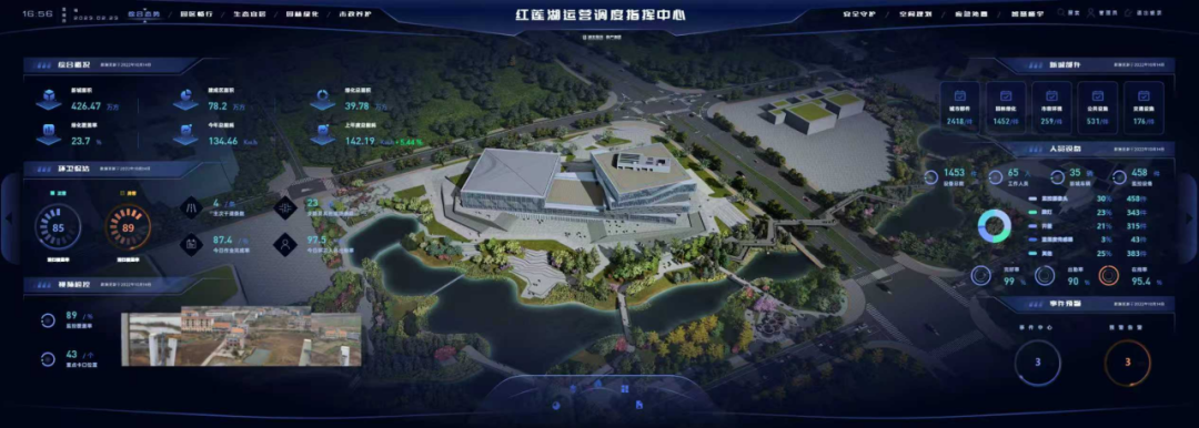 图:红莲湖运营调度指挥中心数据可视化大屏