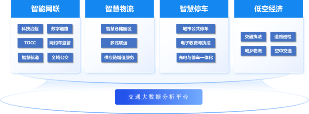 产品驱动,全面支撑。基于自研的交通数字化解决方案体系,深度融合云计算与AI技术打造产品矩阵,服务于城市交通、公路运输、园区交通等多个领域,形成“技术产品化、产品场景化、场景规模化”的发展路径。