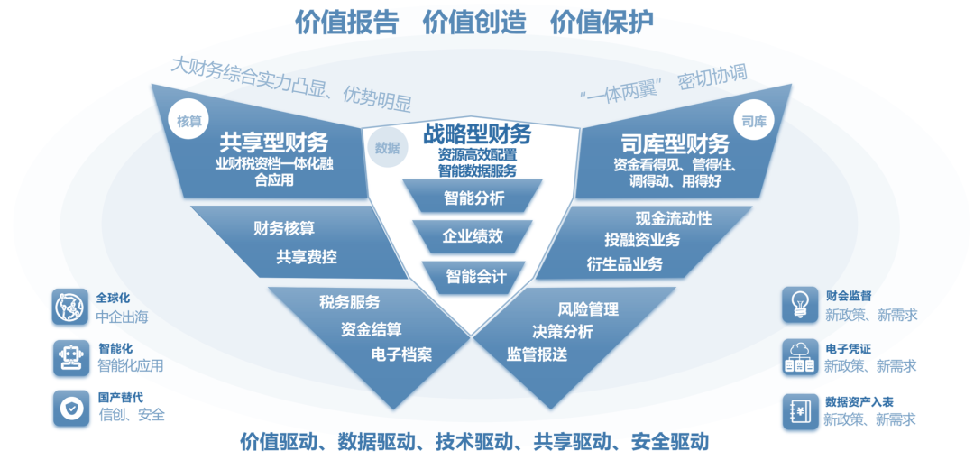 国企财务数字化转型的核心在于构建“价值创造型”财务体系。数字财务事业部以数据治理为基础,以司库与共享中心为双轮驱动,推动财务职能从“合规记录者”向“价值创造者”跃迁。