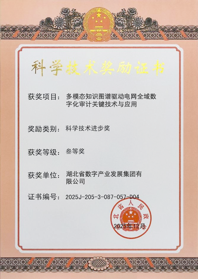 1月,湖北省科技创新大会在武汉洪山礼堂举行。联投数产集团参与完成的“多模态知识图谱驱动电网全域数字化审计关键技术与应用”获科学技术进步三等奖。项目依托多模态知识图谱技术体系,研发电网全域数字化审计平台,实现“全模态覆盖、全链条穿透、全周期防控”。平台整合电网全流程数据,打破数据与流程壁垒,通过智能关联分析精准识别预判风险,推动审计模式从“事后纠错”转向“事前防控、事中监管”,其中电网全链条审计高效查询与关联分析技术达国际领先,大幅提升审计效率、降低人工遗漏风险,为电网审计智能化升级提供核心支撑。